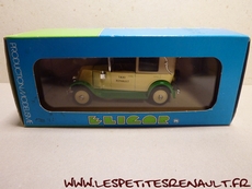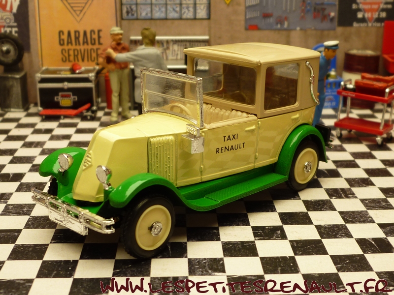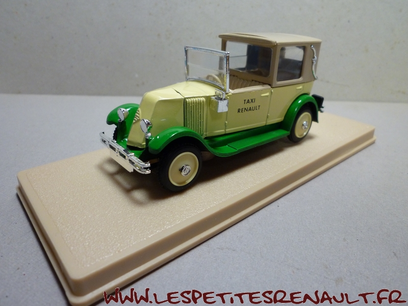 Modèle : NN2 Taxi Année : 1929 Couleur : Vert pâle et vert Echelle : 1/43 Fabricant : Eligor Référence : 1042D Collection : Non Matière :Zamak, châssis plastique Série limitée : Non Boitage : Boite cristal 6x15, surboite Eligor Commentaires : Version découverte au niveau du chauffeur avec roues vert pâles, ailes vertes, caisse vert pâle et capote beige Modèle indiqué sur la boite comme Renault KZ 1928 – C° des Taxis Parisiens. La présence du pare-chocs doubles et les ailes galbées en font un type NN2 de 1929. |