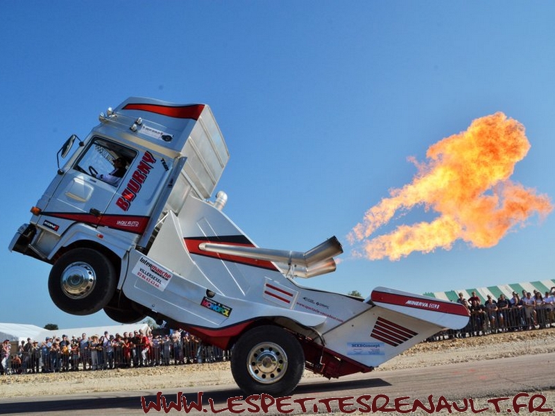 Il s'agit en fait d'un Renault R 390 avec un moteur V8 qui appartenait à Claude Cuynet (pilote de courses camions).