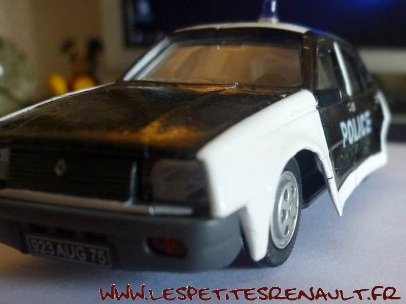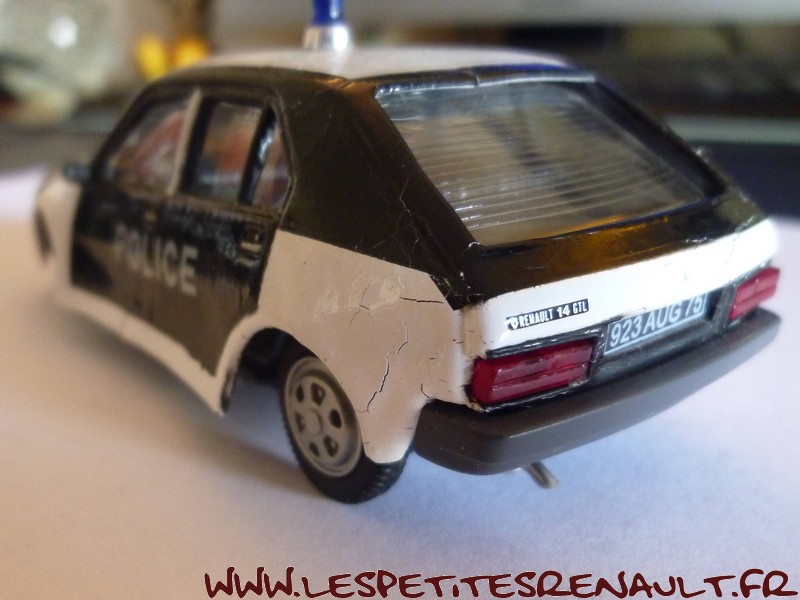 Modèle : Renault 14 TL Phase 1 Année : 1976 Couleur : Noire et blanche Echelle : 1/43 Fabricant : Norev Référence : 15 Collection : Police et Gendarmerie (Hachette) Matière : Zamak, châssis plastique Série limité : Non Boitage : Blister + boite carton Commentaires : Modèle atteint par la maladie du zamak (déformation très importante) |