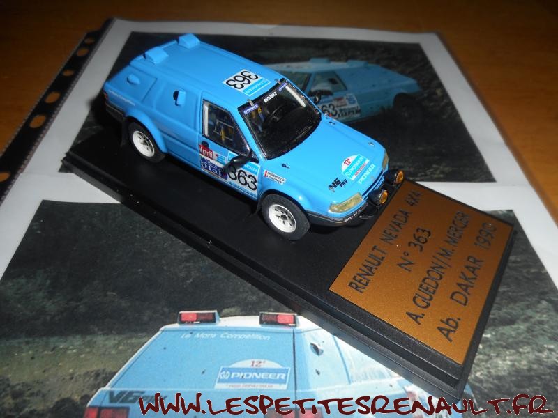 Modèle : Renault 21 Nevada phase 1 4x4 Année : 1989 Course : Paris Dakar Equipage : #363 - Guedon / Merger Couleur : Bleu ciel Echelle : 1/43 Fabricant : CMM Référence : Inconnue Collection : Non Matière : Résine Série limitée : Non Boitage : Boite carton Commentaires : Abandon |