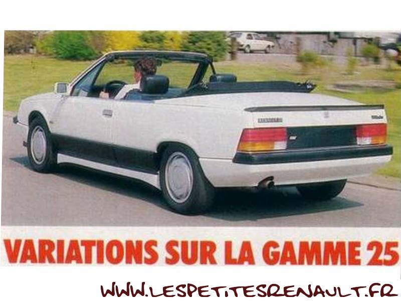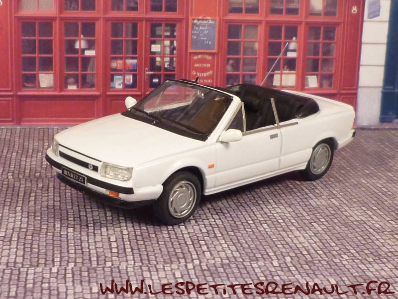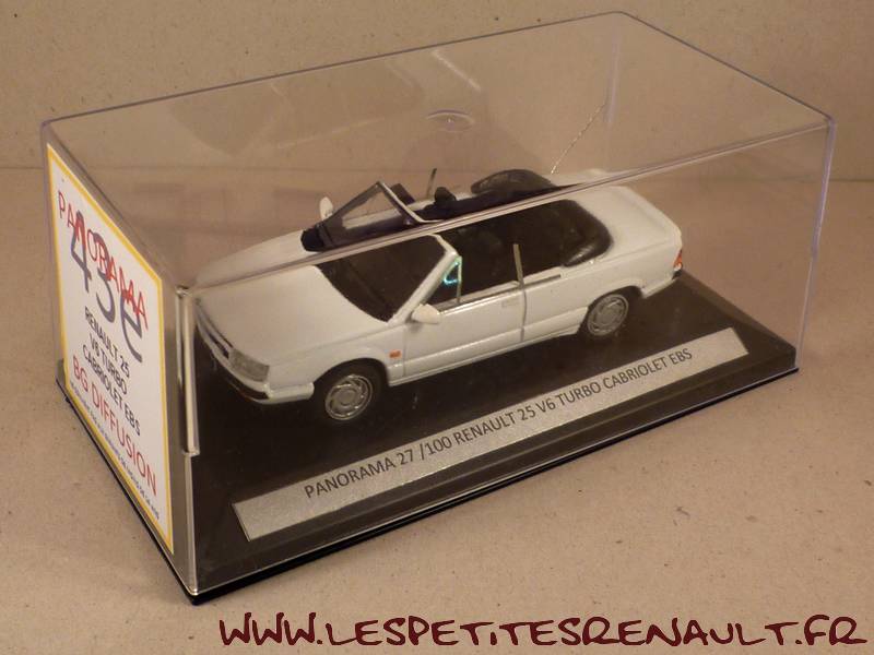 Modèle : Renault 25 phase 1 V6 Turbo cabriolet Année : 1986 Couleur : Blanche Echelle : 1/43 Fabricant : BG Diffusion Référence : Inconnue Collection : Non Matière : Résine Série limitée : 27/100 Boitage : Boite cristal Commentaires : Version cabriolet réalisée par EBS. Réalisation de la miniature par BG Diffusion pour le compte de l'ACMA |