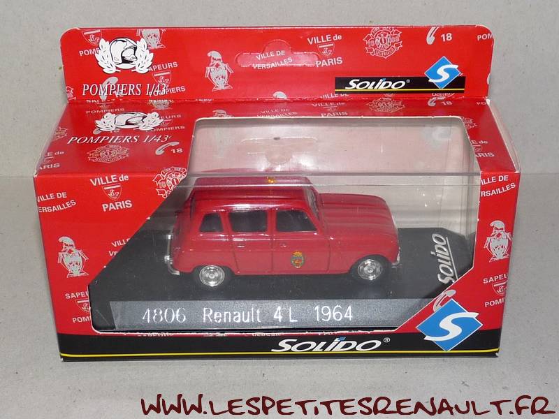 Modèle : Renault 4 L PompiersAnnée : 1964 Couleur : Rouge Fabriquant : Solido Référence : 4806 Collection : L'age d'or Matière : Zamak, châssis plastique Série limité : Non Boitage : Boite cristal 6x15, surboite Solido pompiers Commentaires : Décoration Pompiers de Paris |