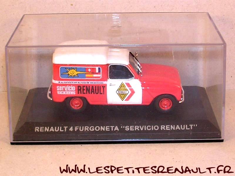 Modèle : Renault 4 F4Année : 1968 Couleur : Orange et blanc Fabriquant : Ixo Référence : -- Collection : Furgonetas de Antano (Altaya) Matière : Zamak, châssis plastique Série limité : Non Boitage : Boite cristal 6x13 Commentaires : Décoration Renault Service Espagne |