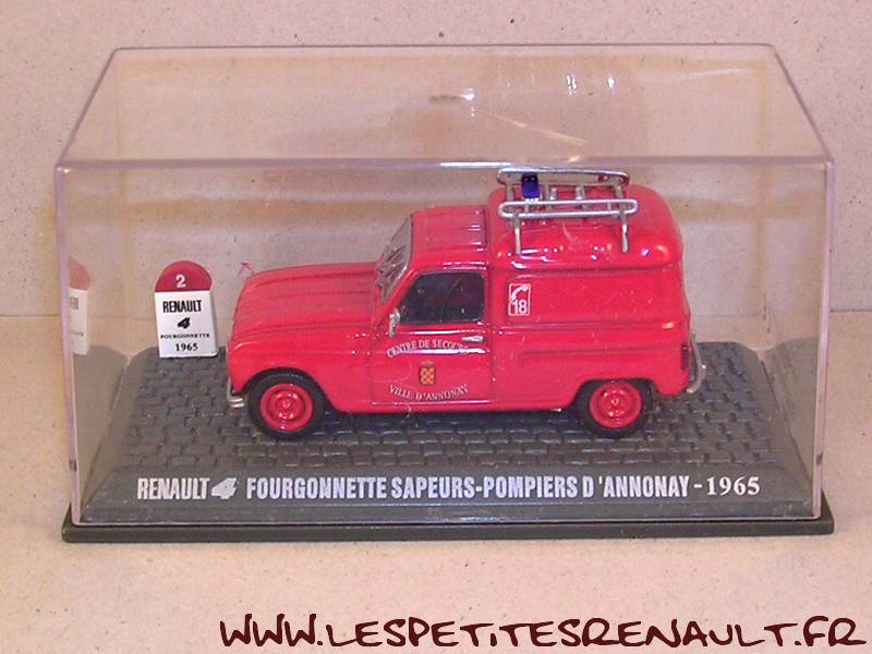 Modèle : Renault 4 tôlée PompiersAnnée : 1965 Couleur : Rouge Fabriquant : Universal Hobbies Référence : 2bis Collection : Mythique R4 (M6) Matière : Zamak, châssis plastique Série limité : Non Boitage : Boite cristal 6x13 Commentaires : Décoration Pompiers d'Annonay |
