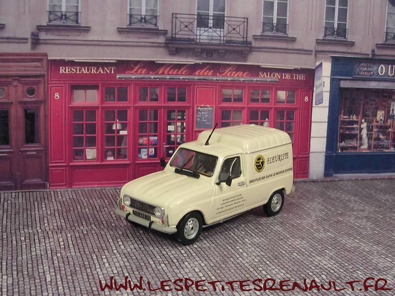 Modèle : Renault 4 F6 tôléeAnnée : 1986 Couleur : Beige Fabriquant : Universal Hobbies Référence : 5bis Collection : Mythique R4 (M6) Matière : Zamak, châssis plastique Série limité : Non Boitage : Boite cristal 6x13 Commentaires : Décoration Interflora |