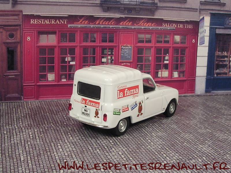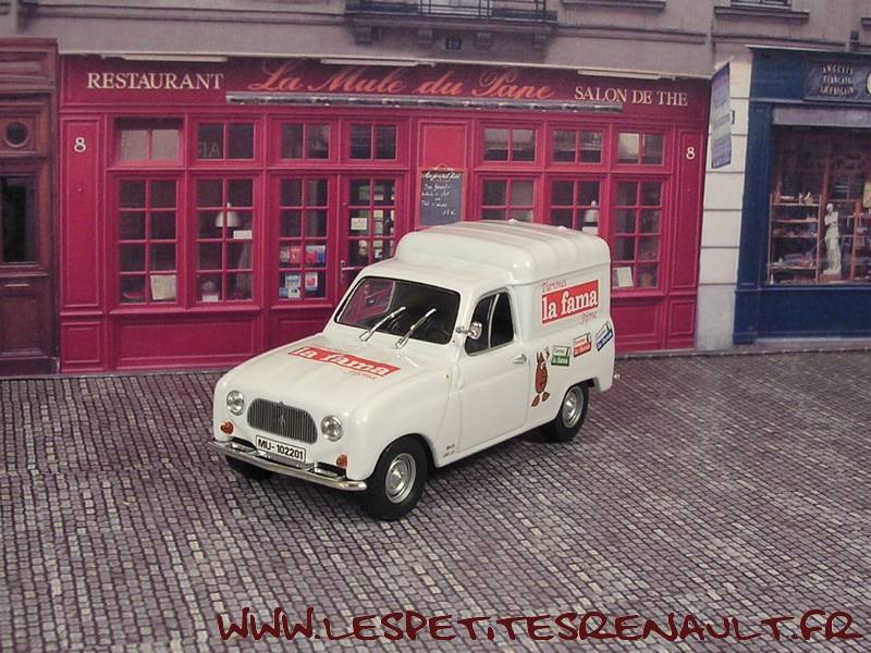Modèle : Renault 4 tôléeAnnée : 1965 Couleur : Blanche Fabriquant : Ixo Référence : 42 (édition 1) Collection : Furgonetas de Antano (Altaya) Matière : Zamak, châssis plastique Série limité : Non Boitage : Boite cristal 6x13 Commentaires : Décoration La Fama (Espagne) |