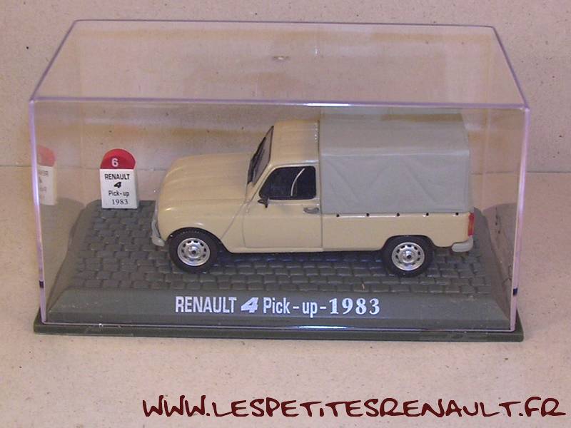 Modèle : Renault 4 Pick Up bâchéAnnée : 1983 Couleur : Beige Fabriquant : Universal Hobbies Référence : 6bis Collection : Mythique R4 (M6) Matière : Zamak, châssis plastique Série limité : Non Boitage : Boite cristal 6x13 Commentaires : -- |