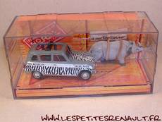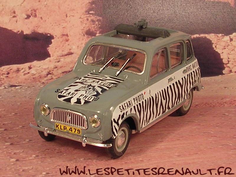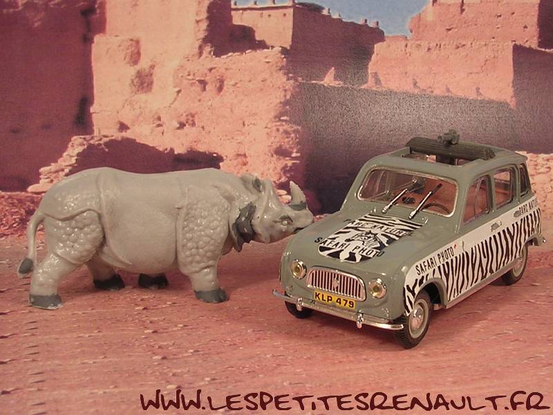 Modèle : Renault 4 LAnnée : 1966 Couleur : grise, rayée noir et blanc Fabriquant : Norev Référence : 7711149063 Collection : -- Matière : Abs, châssis zamak Série limité : Non Boitage : Boite cristal 7x16 Commentaires : Livrée avec un Rhino |