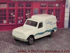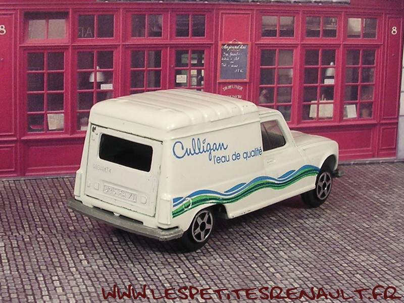 Modèle : Renault 4 F6 tôléeAnnée : 1974 Couleur : Blanche Fabriquant : Norev Référence : 7/800SB Collection : Jet Car Matière : Zamak, châssis plastique Série limité : Non Boitage : Socle carton + blister Commentaires : Décoration Culligan |