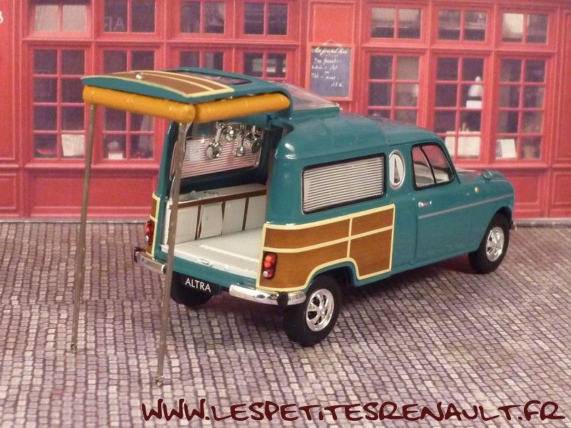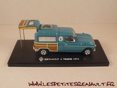 Modèle : Renault 4 camping car Année : 1971 Couleur : Bleu et marron Echelle : 1/43 Fabricant : Ixo Référence 4 Collection : Passion Renault 4 - Auto Plus Matière : Zamak, châssis plastique Série limité : Non Boitage : Socle + Blister Commentaires : Véhicule issu du film Trafic de J. Tati en 1971. Miniature sortie en série test d'une nouvelle collection prévue pour 2017. |