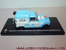 | La Saline4Fun est la 4L la plus rapide du monde. Basée sur un modèle 1983, montée sur un châssis tubulaire et équipée d'un 4 cylindres de Renault 5 Turbo monté à l'avant, elle a pu atteindre les 237 km/h en 2011 sur le lac salé de Bonneville (puissance 285cv, poids 720kg, vitesse max théorique 280 km/h) |