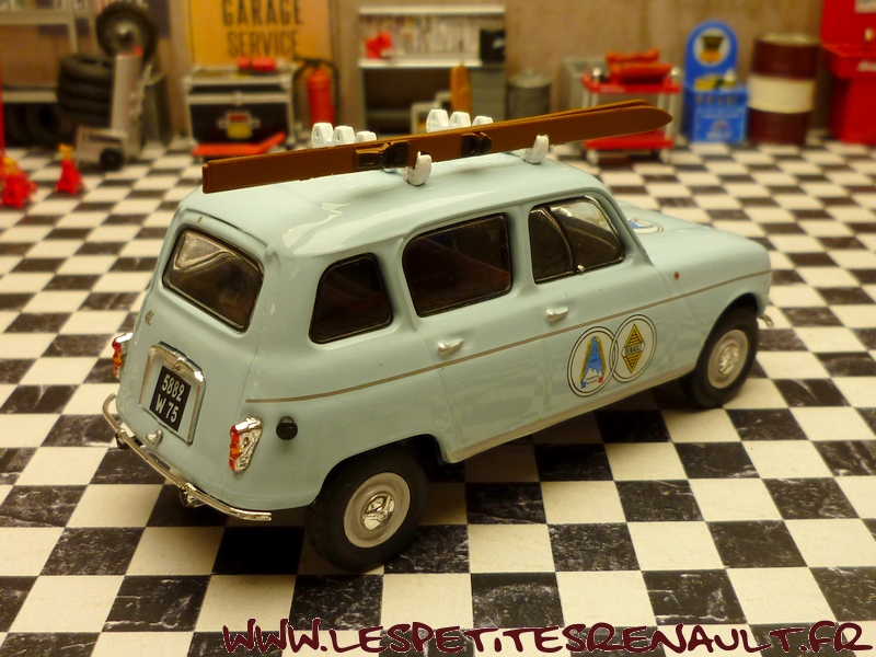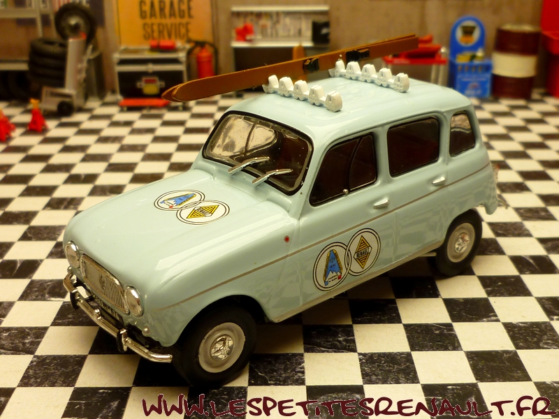 Modèle : Renault 4 L Année : 1962 Couleur : Bleu ciel Echelle : 1/43 Fabricant : Ixo Référence : 23 Collection : Passion Renault 4 (Hachette) Matière : Zamak, châssis plastique Série limitée : Non Boitage : Socle + blister Commentaires : Modèle ayant servi pour assurer le transport des skieurs pendant les championnats du monde de ski alpin à Chamonix en 1962 |