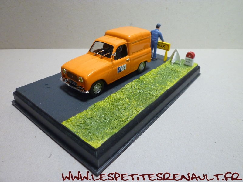 Modèle : Renault 4 F4 Année : 1967 Couleur : Orange Echelle : 1/43 Fabricant : Ixo Référence : 47 Collection : La Route Bleue (Altaya) Matière : Zamak, châssis plastique Série limitée : Non Boitage : Diorama Commentaires : Décoration DDE. Miniature livrée sur un diorama avec personnage et accessoires |