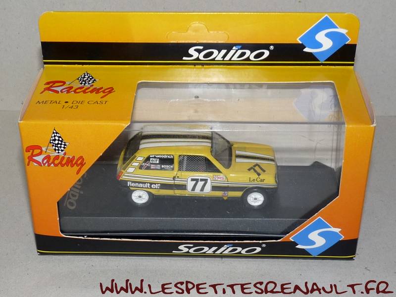 Modèle : Renault 5 RSAnnée : 1980 Couleur : Jaune Fabriquant : Solido Référence : -- Collection : -- Matière : Zamak, châssis plastique Série limité : Non Boitage : Boite cristal 6x15, surboite Solido racing Commentaires : Décoration Le Car. Transkit sur base Solido |