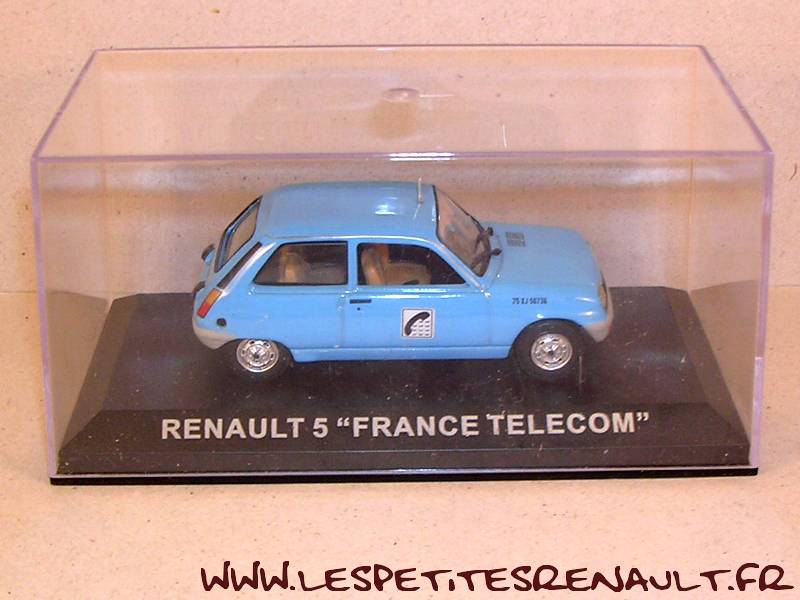 Modèle : Renault 5 TLAnnée : 1973 Couleur : Bleue Fabriquant : Ixo Référence : 53 Collection : Camionnettes d'antan (Altaya) Matière : Zamak, châssis plastique Série limité : Non Boitage : Boite cristal 6x13 Commentaires : Version société. Décoration France Telecom. L’année de la voiture ne colle pas avec l’apparition du marquage FT |