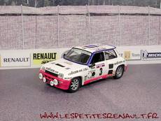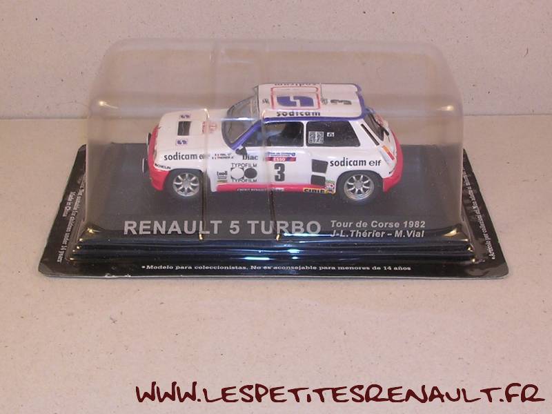 Modèle : Renault 5 TurboAnnée : 1982 Course : Tour de Corse Equipage : n° 3 – Therier / Vial Couleur : Blanche Fabriquant : Ixo Référence : 59 Collection : Voitures de Rallyes (Altaya) Matière : Zamak, châssis plastique Série limité : Non Boitage : Socle + blister Commentaires : -- |
