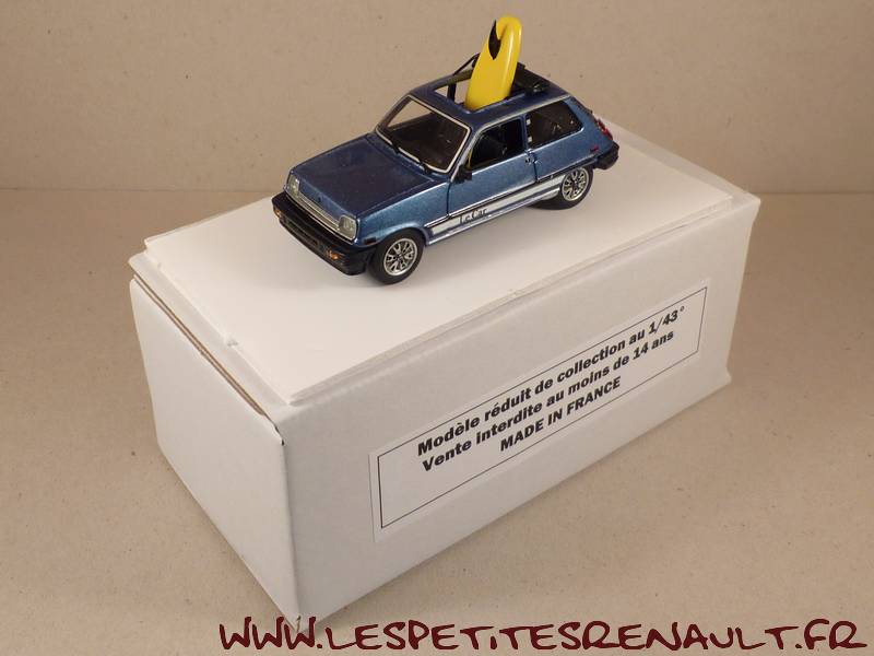 Modèle : Renault 5 Le CarAnnée : 1976 Couleur : Bleue Fabriquant : ACMA Référence : -- Collection : -- Matière : Résine Série limité : 039/080 Boitage : Boite carton Commentaires : Version découverte avec planche de surf. Reprise de la publicité Renault d'époque. |