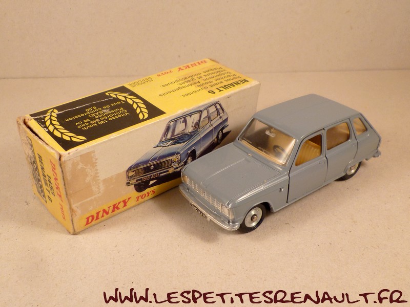 Modèle : Renault 6 phase 2 Année : 1974 Couleur : Grise Echelle : 1/43 Fabricant : Dinky Toys Référence : 1453 Collection : Non Matière : Zamak, châssis plastique Série limitée : Non Boitage : Boite carton Commentaires : Production Dinky Toys Spain. Clignotants avant mal positionnés (devraient être dans le pare-chocs) |