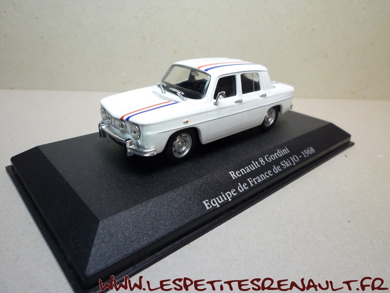 Modèle : Renault 8 Gordini Année : 1968 Couleur : Blanche Echelle : 1/43 Fabricant : Eligor Référence : 27 Collection : La Saga Gordini (Atlas) Matière : Zamak, châssis plastique Série limitée : Non Boitage : Boite cristal + surboite Commentaires : Jean-Claude Killy et 12 de ses coéquipiers de l'équipe de France de ski ont commandé 13 R8 Gordini. La livraison leur a été faite au Pub Renault sur les Champs Elysées. |