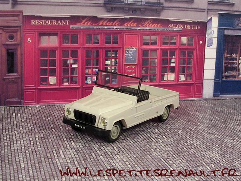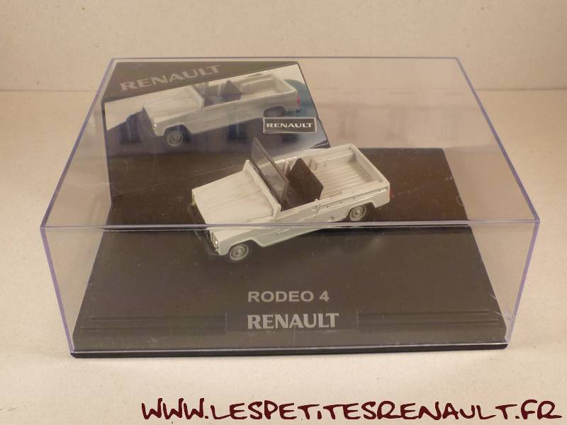 Modèle : Rodeo 4 Evasion Année : 1971 Couleur : Beige Echelle : 1/43 Fabricant : Norev Référence : 7711147404 Collection : Non Matière : Zamak Série limitée : Non Boitage : Boite cristal 12x17 Commentaires : Version sans capote. Fabrication 1997. Vendue uniquement en boutique Renault |