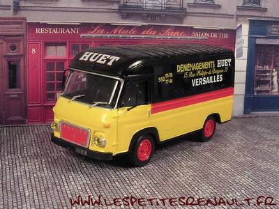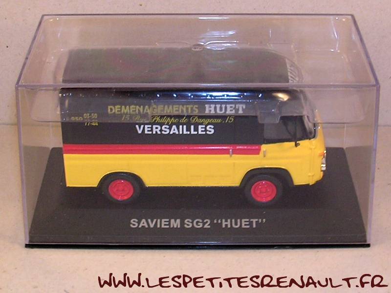 Modèle : Saviem SG2 fourgon Année : 1970 Couleur : Jaune et noir Echelle : 1/43 Fabricant : Ixo Référence : 9 Collection : Camionnettes d'antan (Altaya) Matière : Zamak, châssis plastique Série limité : Non Boitage : Boite cristal 7x15 Commentaires : Décoration HUET. Pas de trace de SG2 aux couleurs de HUET. On ne retrouve que des photos de SG4 |