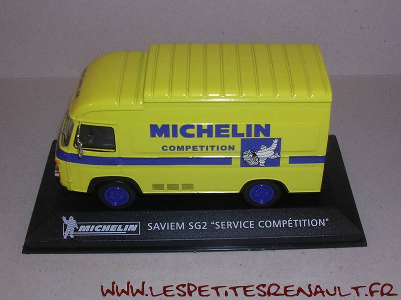 Modèle : Saviem SG2 réhaussé Année : 1972 Couleur : Jaune Echelle : 1/43 Fabricant : Ixo Référence : 7 Collection : Michelin (Altaya) Matière : Zamak, châssis plastique Série limité : Non Boitage : Socle + blister Commentaires : Décoration Service Competition |