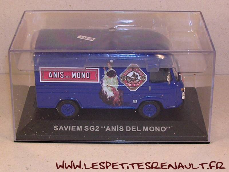 Modèle : Saviem SG2 fourgon Année : 1972 Couleur : Bleu Echelle : 1/43 Fabricant : Ixo Référence : 7 Collection : Furgonetas de Antano (Altaya) Matière : Zamak, châssis plastique Série limité : Non Boitage : Boite cristal 7x15 Commentaires : Décoration Anis del mono |