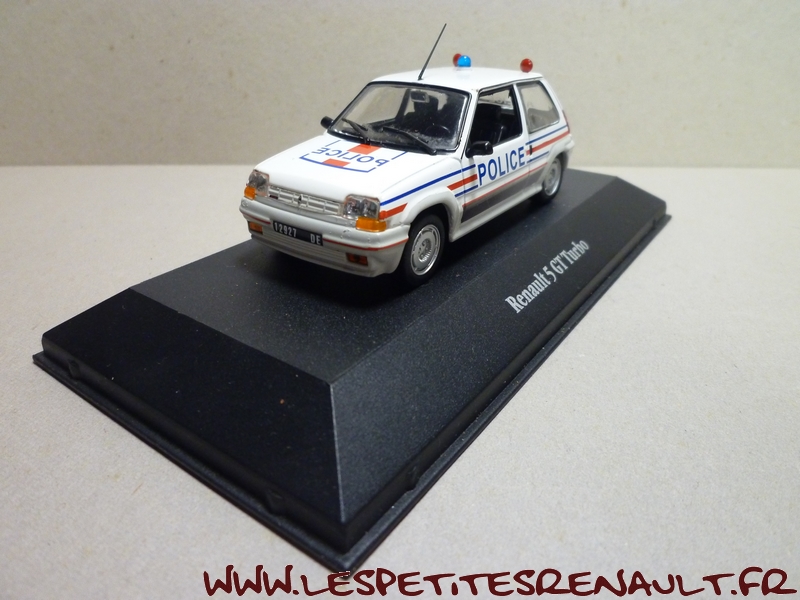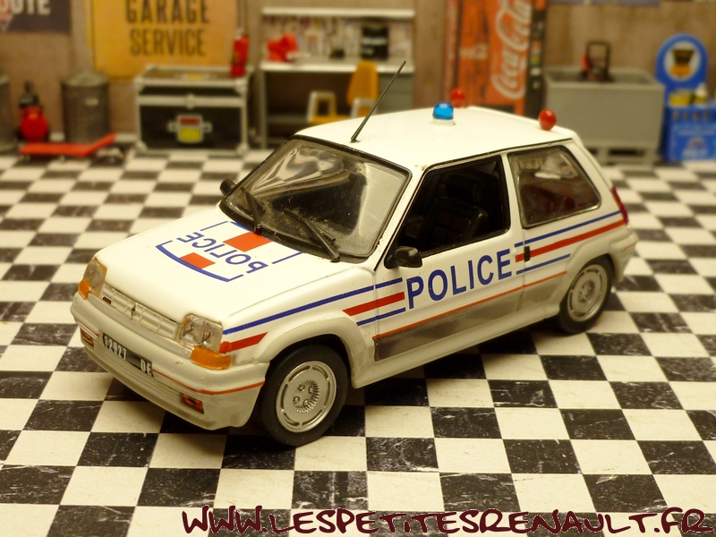 Modèle : Supercinq GT Turbo Année : 1985 Couleur : Blanche Echelle : 1/43 Fabricant : Ixo Référence : 11 Collection : Voitures de Police du monde (Atlas) Matière : Zamak, châssis plastique Série limitée : Non Boitage : Boite cristal Commentaires : Décoration Police Nationale |