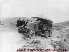 Entre l'Algérie et l'Afrique Occidentale Française, le Sahara constitue une barrière que le chemin de fer n'a pas franchie. Renault met au point ses six-roues. En fait 12, puisqu'elles sont jumelées de façon à mieux porter sur le sable. Avec leurs deux essieux arrière moteurs, ces voitures allient bonne capacité de franchissement, facilité d'utilisation et velocité par rapport à des chenillettes. Fin décembre 1923, première mission réussie en ralliant Touggourt à Tozeur en 2 jours. Dans la foulée, l'expédition Gradis-Estienne effectue en janvier 1924 la jonction Algérie-Niger. Le 15 novembre 1924, M et Mme Delingette, accompagnés du mécanicien M. Bonnaure, se lancent dans la traversée de l'Afrique, de Colomb-Béchar au Cap. Ils y parviennent le 3 juillet 1925, ayant pendant le périple dépassé la mission Citroen Centrafrique. Une aventure exceptionnelle de 23 000 km au cours desquels ils auront traversé 35 rivières en pirogue et construit ou aménagé 129 ponts. |