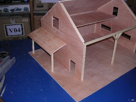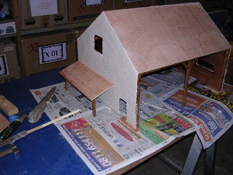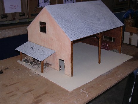Présentation générale la décision de lui fabriquer un hangar pour les garer. On commence ici par le plan des morceaux de bois qui seront taillés dans de l'agglo de 5mm Le tout est complété par du tasseau de 9mm ![]() Assemblage des différents morceaux après une découpe soignée ![]() Suite de l'assemblage, y compris la dépendance pour la scierie ![]() Les murs sont traités avec de l'enduit "murs d'autrefois" pour donner un aspect ancien et irrégulier ![]() Les murs sont ensuite vieillis avec une gouache très diluée La toiture est faite avec une plaque de carton ondulé peinte en gris ![]() Quelques vues de détail ! ![]() ![]() ![]() ![]() |