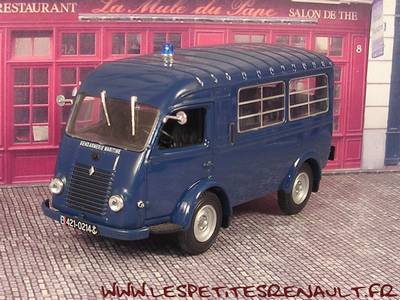 Modèle : 1000 Kg vitré Année : 1956 Couleur : Bleu marine Echelle : 1/43 Fabricant : Norev Référence 40 Collection : Police et Gendarmerie - (Hachette) Matière : Zamak, châssis plastique Série limité : Non Boitage : Blister + boite carton pliée Commentaires : Version Gendarmerie maritime |