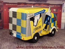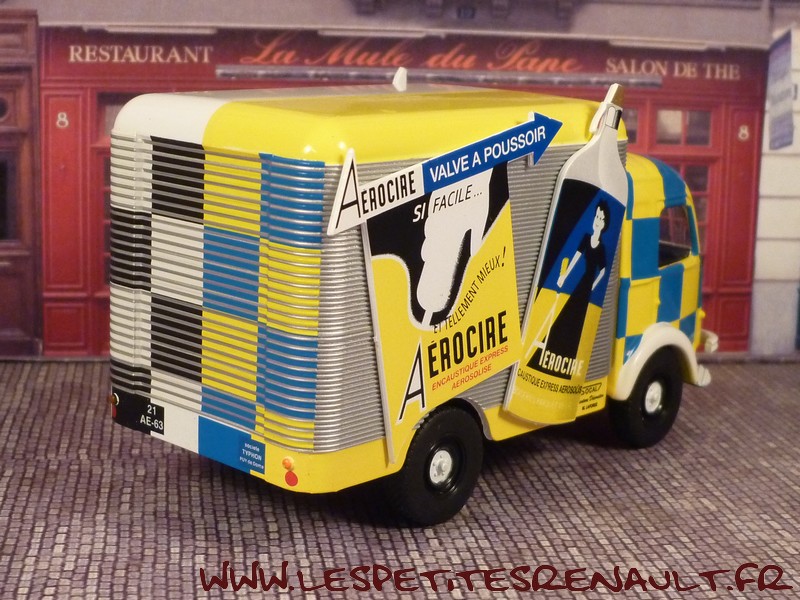 Modèle : 1400 kg Fourgon Année : 1951 Couleur : Blanc, noir, jaune et bleu Echelle : 1/43 Fabricant : Ixo Référence : 49 Collection : Véhicules publicitaires (Auto Plus) Matière : Zamak Série limité : Non Boitage : Socle + Blister Commentaires : Modèle réalisé sur une base de R2061. Version fourgon aux couleurs de Typhon Aérocire. |
