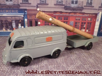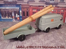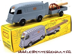 Modèle : 1000 kg tôlé Année : 1956 Couleur : Gris Echelle : 1/45 Fabricant : CIJ Référence : 3/60/TO Collection : -- Matière : Zamak, châssis tôle Série limité : Non Boitage : Boite carton Commentaires : Version PTT avec sa remorque, deux poteaux et deux rouleaux de cable. |
