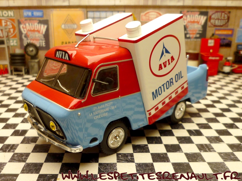 En 1957, les établissements André Picoty, entreprise créée dans les années 20 dans la creuse et spécialisée dans le secteur du pétrole, demandèrent à Le Bastard un véhicule publicitaire sur un châssis Renault 1400 kg. Cette réalisation du carrossier rouennais sera ensuite la propriété d'un distributeur de produits pétroliers, les établissements Richer. Seuls la mécanique, le châssis et la planche de bord ont été conservés pour réaliser cet exemplaire unique. Cette première décoration, rouge et bleue, porte la marque des établissements Picoty, Société de production de lubrifiants et distributeurs des produits Avia sur La Souterraine dans la Creuse. En 2009, après avoir été restauré, le fourgon fût vendu aux enchères par Bonhams. |