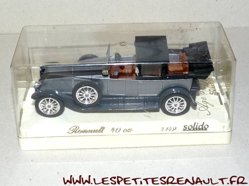 Modèle : 40 cv Laundelet ouverte Année : 1927 Couleur : Gris/bleu métallisé Echelle : 1/43 Fabricant : Solido Référence 4149 Collection : L'âge d'or Matière : Zamak Série limité : Non Boitage : Boite cristal Commentaires : Type MC. Roues argentées, sans malle, capot ouvrant, sans suspensions |