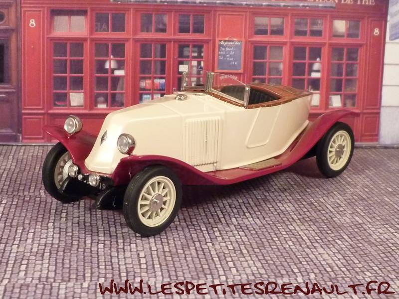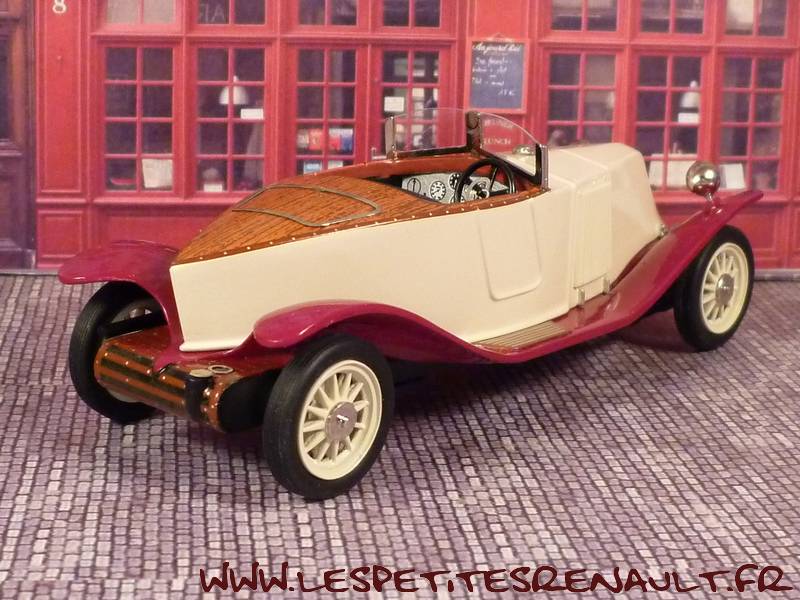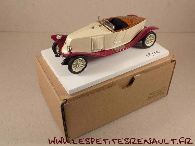 Modèle : 40cv Torpedo Skiff Labourdette Année : 1922 Couleur : Beige et bordeaux Echelle : 1/43 Fabricant : ACMA Référence : -- Collection : -- Matière : Résine Série limité : 42/100 Boitage : Boite carton Commentaires : Type JY - carrosserie de 4,7m de long pour 2 places. Moteur 6 cylindres de 4.2l.pour 18cv et 73 km/h. |