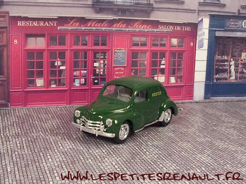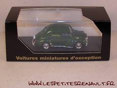 Modèle : 4 cv commerciale Année : 1954 Couleur : Vert foncé Echelle : 1/43 Fabricant : Verem Référence : V572 Collection : Non Matière : Zamak Série limitée : Non Boitage : Boite cristal 6x15 + Surboite CEC Commentaires : Décoration Postes. Modèle anachronique et imaginaire. Pas de commerciales en version 3 moustaches, et aucune photo du modèle à l'échelle 1 |