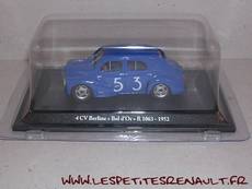Modèle : 4 cv berline Année : 1952 Course : Bol d'or Equipage : #53 - Bizeray Couleur : Bleue Echelle : 1/43 Fabricant : Eligor Référence : 4 Collection : 4 cv collection (Hachette) Matière : Zamak, châssis plastique Série limitée : Non Boitage : Socle + blister Commentaires : Type R1063. 2518,5 km parcourus en 24h |
