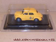 Modèle : 4 cv berline Année : 1958 Couleur : Jaune Echelle : 1/43 Fabricant : Eligor Référence : 8 Collection : 4 cv collection (Hachette) Matière : Zamak, châssis plastique Série limitée : Non Boitage : Socle + blister Commentaires : Type R1062. Version Touring Secours belge |