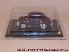 Modèle : 4 cv berline Luxe Année : 1949 Couleur : Bordeaux Echelle : 1/43 Fabricant : Eligor Référence : 22 Collection : 4 cv collection (Hachette) Matière : Zamak, châssis plastique Série limitée : Non Boitage : Socle + blister Commentaires : Type R1060. Version Luxe équipée SAPRAR. |