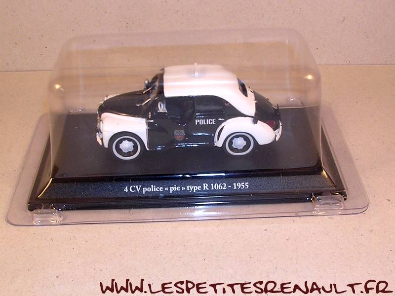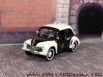 Modèle : 4 cv Police Année : 1956 Couleur : Noire et blanche Echelle : 1/43 Fabricant : Eligor Référence : 28 Collection : Voitures d'antan (Altaya) Matière : Zamak, châssis plastique Série limitée : Non Boitage : Socle + blister Commentaires : Un des 15 premiers modèles livrés à la PP de Paris en 1956. |