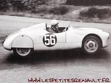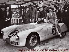 BMS pour Bosvin Michel Spéciale De 1950 à 1955 elle à participé au Bol d'Or, GP de Reims, Mille Miglia, Bressuire, 24heures du Mans, tour de France. Camille Boisvin garagiste à Issoudan participe à des rallyes au volant d'une 4cv Renault, puis la transforme en barquette, gardant sa plateforme et ses suspensions, le moteur est un 747cc, la boite est à 5 vitesses (boite Claude), la carrosserie en alu est fabriquée par les frères Chappe, et ne pèse que 530kg. Sur la première version le moteur est en porte à faux arrière mais elle est rapidement modifiée en moteur central arrière pour inverser le sens de rotation et avoir 5 marches avant. La boite de vitesses est modifiée, la BMS est une des premières barquettes 4 cv dont le moteur est en central arrière comme les barquettes modernes, la carrosserie est également modifiée devenant plus courte et fuyante. |