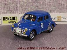 Modèle : 4 cv berline Année : 1953 Course : Paris - St Raphaël Equipage : #22- Yvonne Simon Couleur : Bleue Echelle : 1/43 Fabricant : Eligor Référence : 37 Collection : 4 cv collection (Hachette) Matière : Zamak, châssis plastique Série limitée : Non Boitage : Socle + blister Commentaires : Type R1063 immatriculée 8800 AD 13 vainqueur de l'épreuve. Rallye réservé aux équipages féminins |