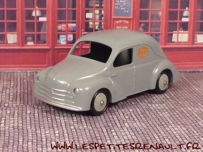 Modèle : 4 cv commerciale Année : 1955 Couleur : Grise Echelle : 1/43 Fabricant : CIJ by Norev Référence : 3/49/UT Collection : Non Matière : Zamak, châssis tôle Série limitée : Non Boitage : Boite carton Commentaires : Version PTT. Ré-édition Norev sur base CIJ. Modèle anachronique (calandre 3 moustache) et décoration non conforme aux originaux |