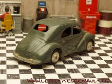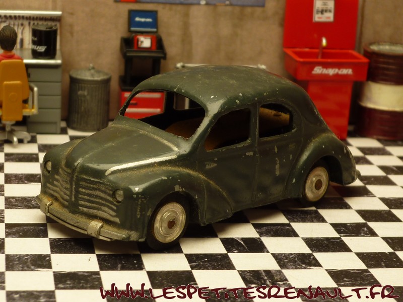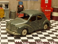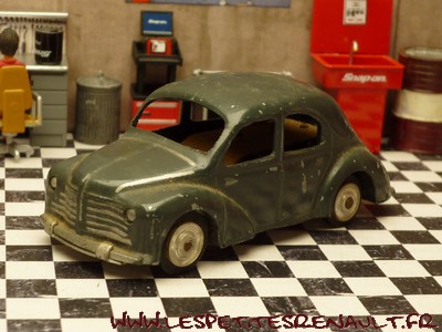 Modèle : 4 cv berline Année : 1949 Couleur : Gris foncé Echelle : 1/45 Fabricant : CIJ Référence : 3/48 Collection : -- Matière : Zamak, châssis tôle Série limitée : Non Boitage : Boite carton Commentaires : Version 6 moustaches, jantes en alu, châssis clipsé par des agrafes et moteur à clé |