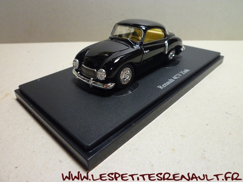 Modèle : 4cv Zink Année : 1954 Couleur : Noire Echelle : 1/43 Fabricant : Autocult Référence : 03025 Collection : Non Matière : Résine Série limitée : 333 ex. Boitage : Boite cristal + surboite Commentaires : Modèle réalisé par Mr Zink, concessionnaire Renault en Allemagne et présentant une légère ressemblance avec la Porsche 356 |