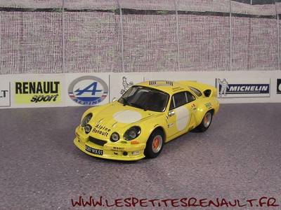 Modèle : Alpine A 110 1800 16S Gr4 Année : 1975 Course : Tour de France Couleur : Serpaggi/Prevost Couleur : Jaune Echelle : 1/43 Fabricant : Eligor Référence : 32 Collection : Alpines et Renault sportives (Hachette) Matière : Zamak, châssis plastique Série limité : Non Boitage : Socle + blister Commentaires : Exemplaire restauré par Renault "Histoire et Collection". A aussi participé au Tour Auto de 2006 avec le numéro 204 et à son bord le même équipage qu'en 1975. |
