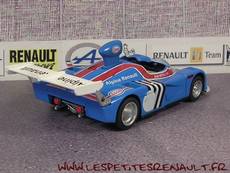 Modèle : Alpine A 441 Année : 1974 Course : Championnat d'Europe Equipage : Jean Ortelli Couleur : Bleue Echelle : 1/43 Fabricant : Eligor Référence : 38 Collection : Alpine et Renault sportives (Hachette) Matière : Zamak, châssis plastique Série limité : Non Boitage : Socle + Blister Commentaires : Version de présentation. Moteur V6 2L de 285ch au lieu de 270ch pour l'A 440. 3 exemplaires e l''A441 ont été construits |