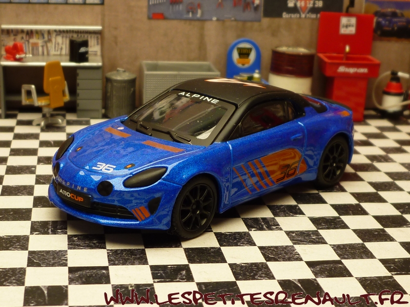 Modèle : Alpine A110 Année : 2018 Course : Alpine Europa Cup Equipage : #36 Couleur : Bleu métalisé Echelle : 1/43 Fabricant : Bburago Référence : 18-38010 Collection : Non Matière : Zamak, châssis plastique Série limité : Non Boitage : Boite carton + plastique Commentaires : Version présentation utilisée en 2018 dans le cadre de l'Alpine Europa Cup. |