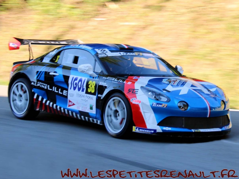 | L'Alpine A110 R-GT est produite par Signatech et reprend le châssis en aluminium des Alpine A110 GT4 et Cup. Elle reçoit un arceau de sécurité homologué FIA ainsi que des sièges baquet Sabelt à harnais six points. Elle conserve le moteur 4-cylindres 1,8 litre TCe dont la puissance est portée à 300 cv. |
